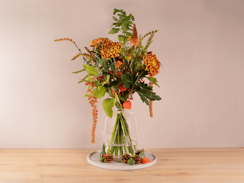 Veldachtig boeket in herfsttinten, losjes geschikt met natuurlijke hoogteverschillen.